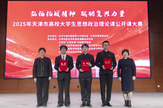 11月8日,“弘扬抗战精神 砥砺复兴力量”2025年天津市高校大学生思想政治理论课公开课大赛(高职独立学院组)决赛落下帷幕。由我院思政课部郑帅男、于月、田艳宁老师指导,2024级学生南佳乐担任主讲的参赛团队,从全市入围决赛的15支队伍中脱颖而出,取得第三名的优异成绩,充分彰显了我校在思想政治教育方面的扎实功底和综合能力。